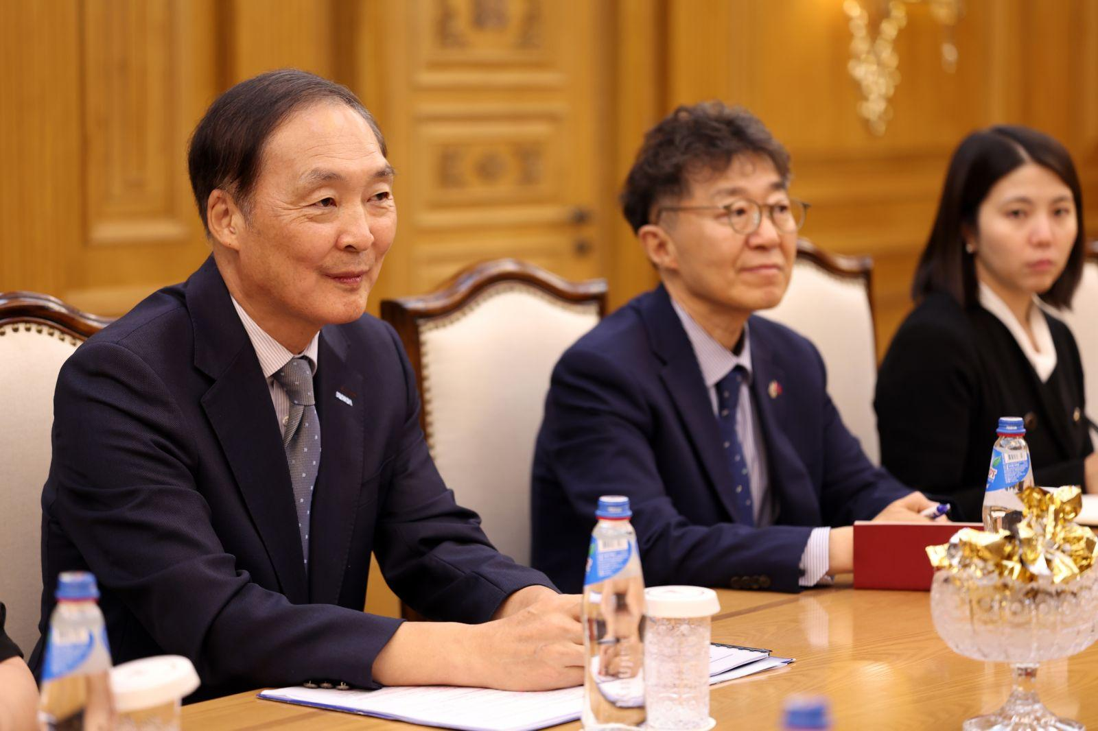 Монгол Улсын Ерөнхий сайд Г.Занданшатар манай улсад айлчилж буй БНСУ-ын Олон улсын хамтын ажиллагааны байгууллага (КОЙКА)-ын Ерөнхийлөгч Чан Вон Самтай уулзаж, хоёр талын хамтын ажиллагааны талаар санал солилцов.