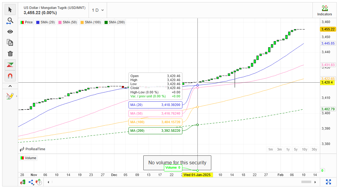 Монголбанкны зарласан өнөөдрийн ханшаар ам.долларын ханш USD/MNT 3455 төгрөг байна. Сүүлийн 3 сар буюу аравдугаар сарын 13-ны өдрөөс хоёрдугаар сарын сарын 10-ний хооронд ам.доллар төгрөгийн эсрэг 3379 төгрөгөөс 3455 төгрөг хүртэл 76 төгрөгөөр чангарсан байна. Ердөө гурван сарын дотор 76 төгрөгөөр чангарчээ. Харин оны эхнээс USD/MNT 3419 төгрөгөөс 3455 төгрөг хүрч 36 төгрөгөөр өссөн. Харин өнгөрсөн баасан гарагаас 6 төгрөгөөр өсөж 3455 төгрөгт хүрлээ. USD/MNT харьцаж байсан ам.долларын ханш өнгөрсөн оны аравдугаар сарыг хүртэл 53 төгрөгөөр сулраад байсан. Гэтэл оны сүүл рүү чангарсан байсан төгрөг ам.долларын эсрэг эргээд суларч USD/MNT 3411 төгрөгтэй харьцаж байсан бол өнөөдөр 3455 төгрөг хүрсэн юм. Цаашдаа ч төгрөг ам.долларын эсрэг сулрана. АНУ-ын ам.долларын ханш бүхий л валютуудын эсрэг сүүлийн таван сар дараалан чангарч байна. Тухайлбал Евро ам.долларын эсрэг гурван сарын дотор 1.11 ам.доллараас 1.03 ам.доллар хүрч сулраад байна. Европын холбооны улсууд нэг валюттай болсноос хойш яг 20 жилийн дараа 2022 оны есдүгээр сард ам.долларын ханш еврогийн ханшнаас тэг бүхэл ханш руу орж ирсэн тохиолдол гарсан. Үүнийгээ давтвал яах вэ? USD/MNT хэд болох вэ?