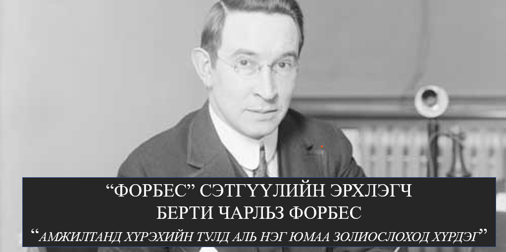 Дэлхийд алдартай “Форбес” сэтгүүлийг мэдэхгүй хүн бараг байхгүй биз ээ! Тэгвэл бид долоо хоногийн ажил хэрэгч зөвлөгөөгөөрөө бүгдийн танил болсон “Форбес” сэтгүүлийг үндэслэгч, Шотландын эдийн засгийн сэтгүүлч Берти Чарльз Форбесын ажил хэрэгч зөвлөгөөг уншигчдадаа хүргэх болсондоо баяртай байна.