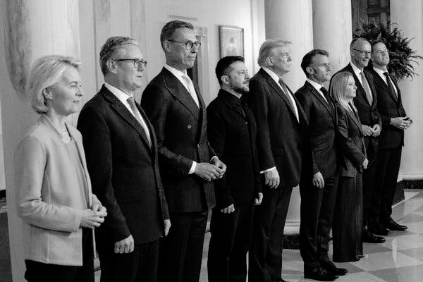 Трамп болон Зеленский нар Европын удирдагчидтай хамт хоёр цагаас илүү үргэлжилсэн олон талын уулзалт хийсэн бөгөөд оролцогчдын дунд Британи, Герман, Франц, Итали, Финланд, Европын Холбоо болон НАТО-гийн удирдагчид байв.