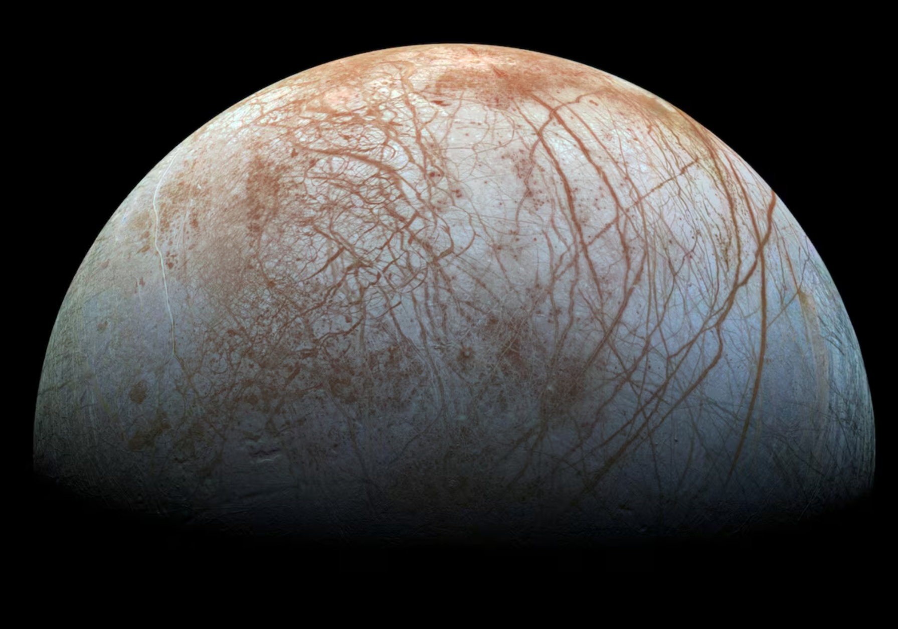 Зургийн тайлбар: NASA-гийн “Галилео” хөлгөөс 1990-ээд оны сүүлээр авсан зургуудын үндсэн дээр бүтээгдсэн Бархасбадийн дагуул Европагийн дүрслэл.