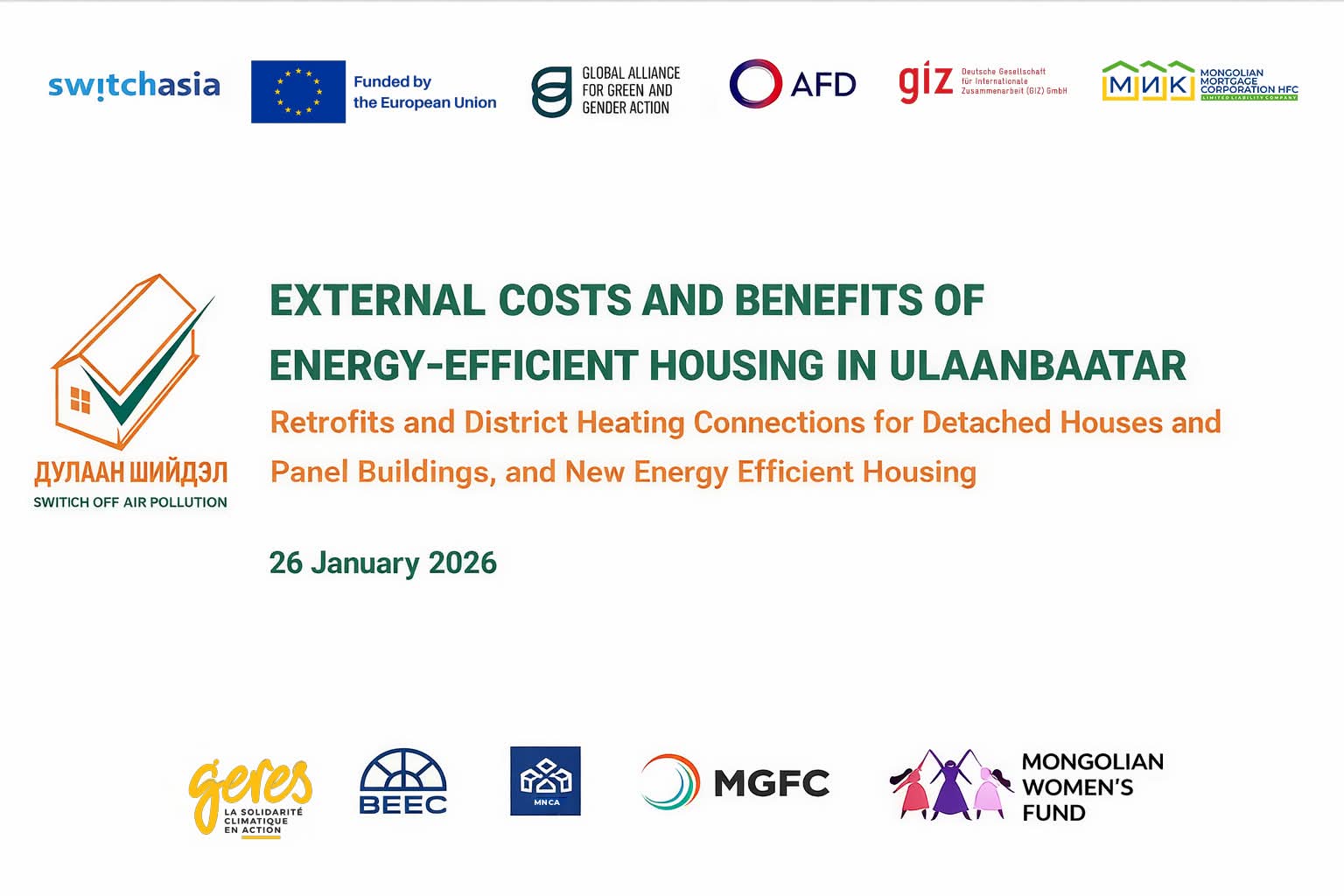 Орон сууцны салбарт хэрэгжүүлэх эрчим хүчний хэмнэлттэй шийдлүүдийн экстерналити (дам) зардал, үр ашгийг тооцож үнэлсэн цогц судалгаа хийгдэж, түүний үр дүнг холбогдох талуудад танилцууллаа. Энэхүү судалгаа нь агаарын бохирдлыг бууруулах, хүн амын эрүүл мэндийг хамгаалах, эдийн засгийн урт хугацааны үр ашгийг нэмэгдүүлэхэд эрчим хүчний хэмнэлттэй орон сууц чухал үүрэгтэйг тодорхой харуулж байна.