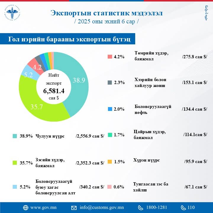 ГААЛИЙН ЕРӨНХИЙ ГАЗАР: Монгол Улс энэ оны 06 дугаар сарын байдлаар 0.9 мянган тонн малын мах, дайвар бүтээгдэхүүн, 4.20 тонн алт экспортолжээ💹💹💹 | ҮГ... | Үг бол үнэ цэн...
