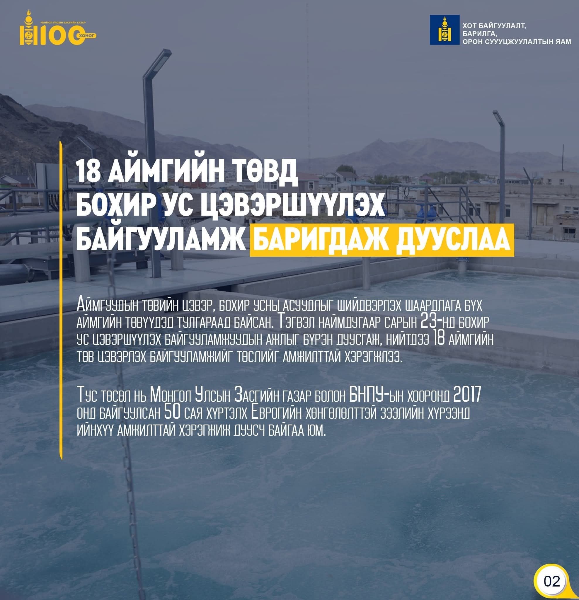 ✅18 аймгийн төвд бохир ус цэвэршүүлэх байгууламж баригдаж дууслаа.