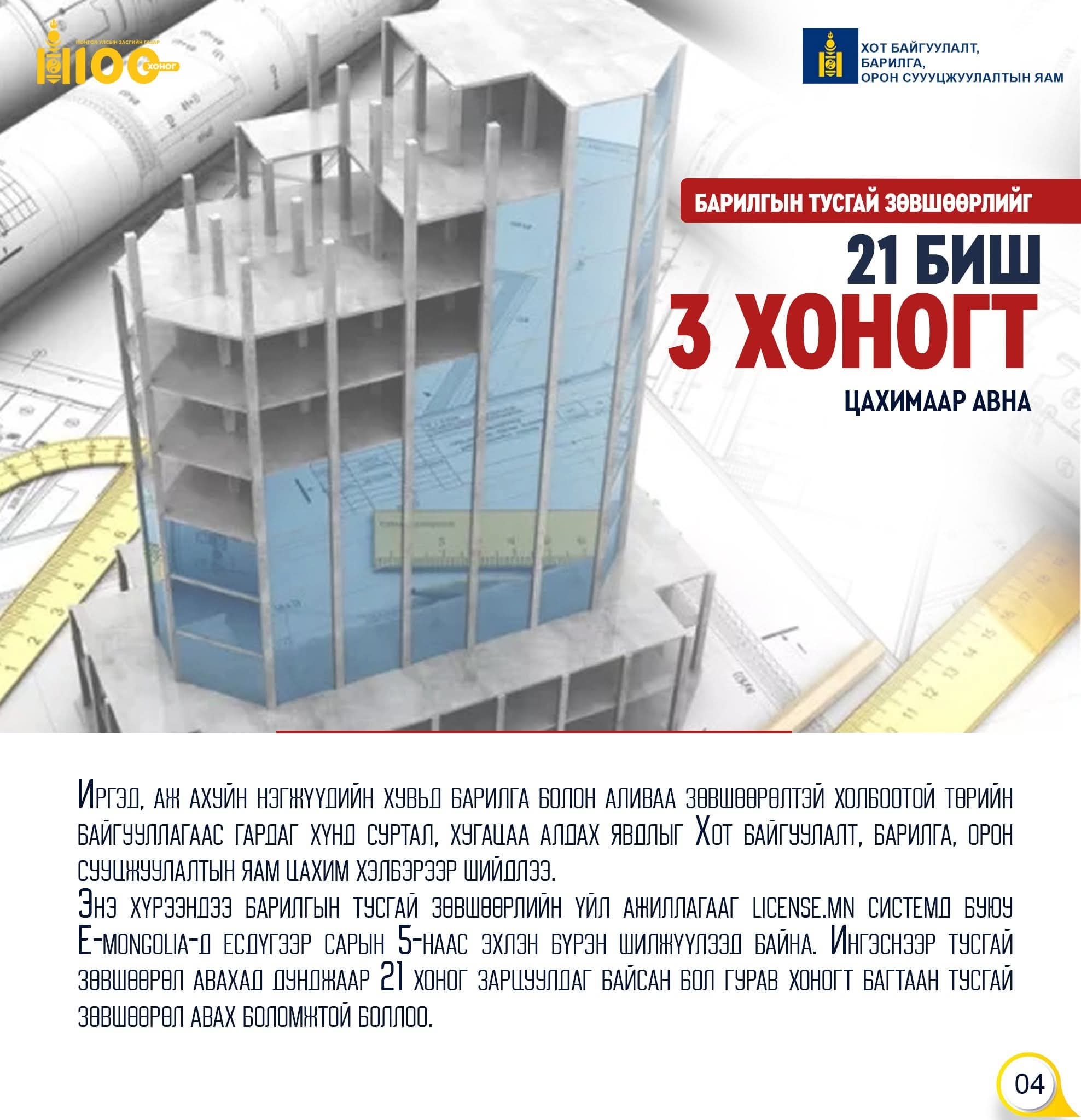 ✅Барилгын тусгай зөвшөөрлийг 21 биш 3 хоногт цахимаар авдаг боллоо.