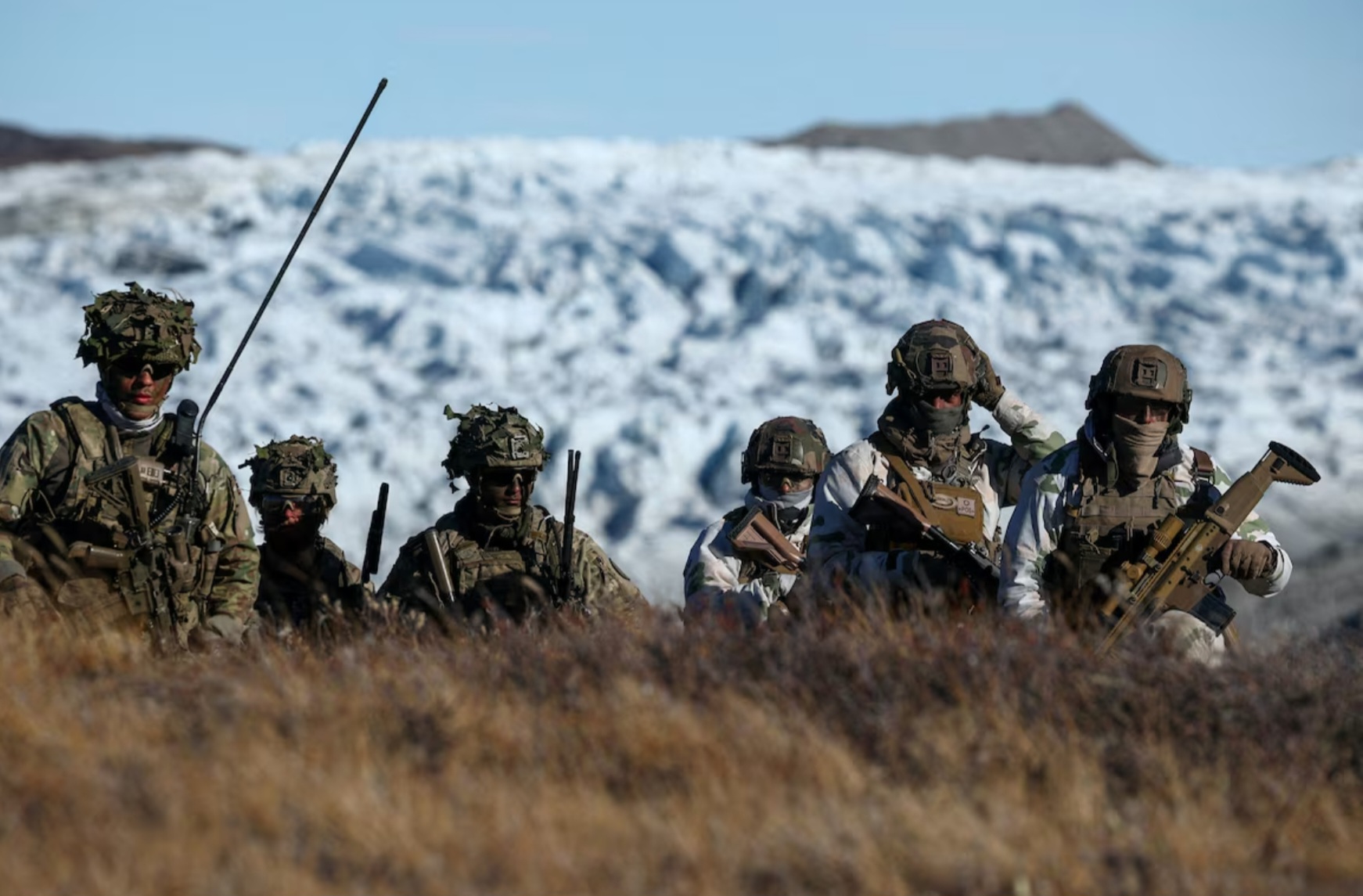 2025 оны 9 дүгээр сарын 17-нд Грийнландын Кангерлуссуак хотод Данийн, Шведийн, Норвегийн иргэний хамгаалалтын нэгжүүд Данийн, Германы, Францын цэргүүдтэй хамтран явуулсан хамтарсан цэргийн сургуулилтын үеэр Данийн цэргүүд болзошгүй аюул заналхийллийг илрүүлэх дасгал хийж буй нь. REUTERS / Гульельмо Манжапане (архив зураг)