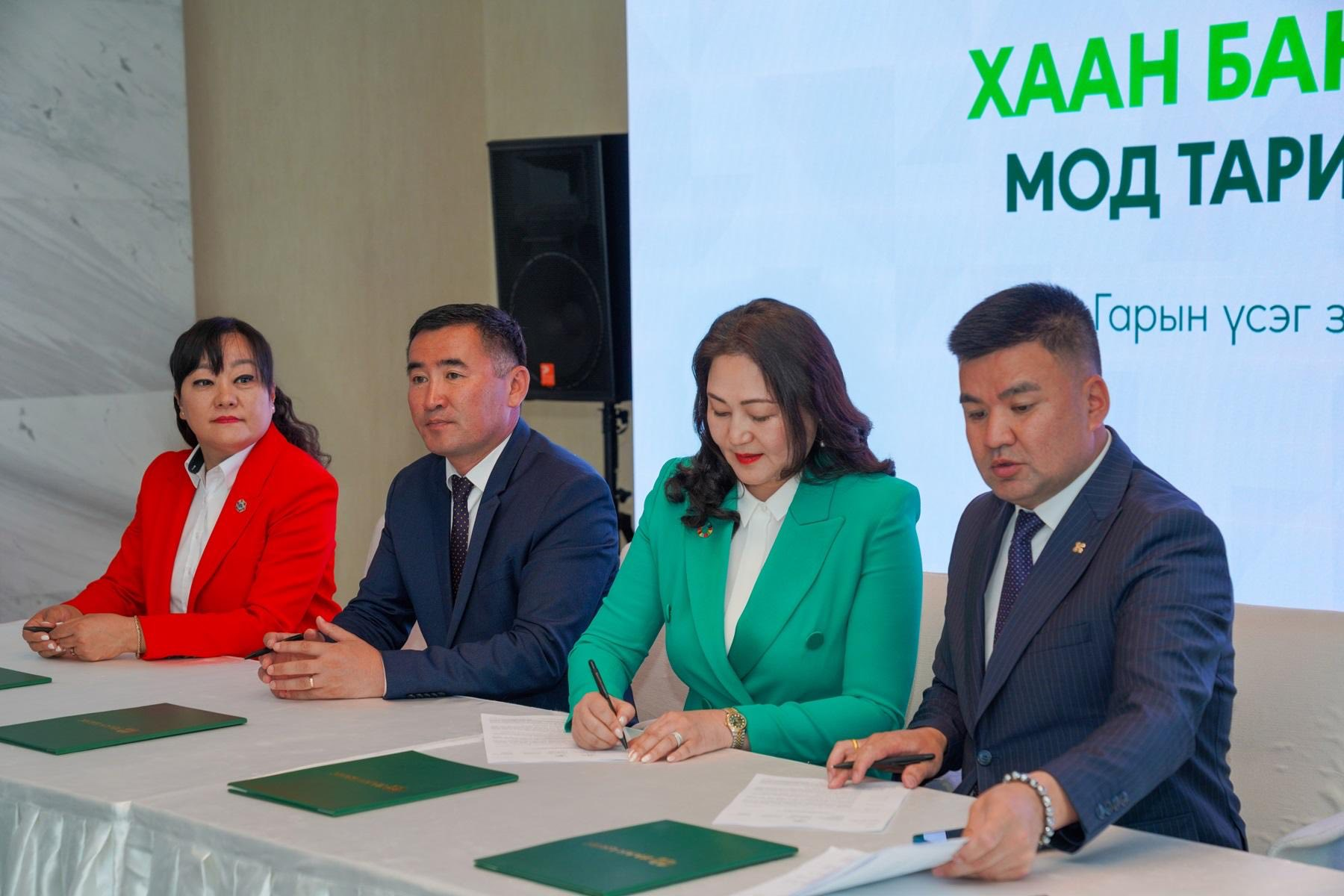 ХААН Банк энэ онд Төв аймгийн Батсүмбэр суманд 400 га, Хэнтий аймгийн Өмнөдэлгэр суманд 100 га, нийт 500 га талбайд 1 сая мод тарихаар өнөөдөр хамтрагч байгууллагуудтай гэрээнд гарын үсэг зурлаа.