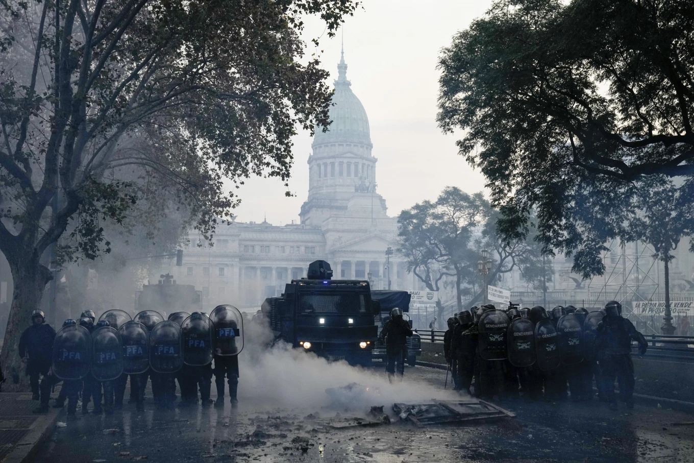 2024 оны 6-р сарын 12, Аргентин, Буэнос-Айрес хот. Хавьер Милэйгийн шинэчлэлийн хуулийн төслийг хэлэлцэгдэх үеийн эсэргүүцлийн жагсаал.