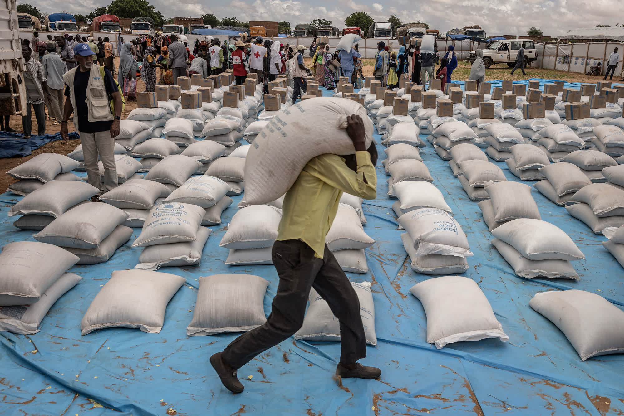 Адред Суданы иргэний дайны улмаас дүрвэсэн хүмүүст сар бүр хоол хүнс тараадаг.