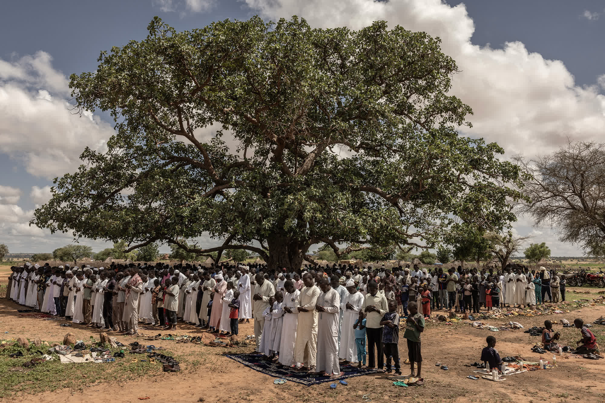 Чадын зүүн хэсгийн Табери тосгонд Баасан гарагийн залбирал хийхээр голдуу Суданы дүрвэгч эрчүүд модны дор цуглардаг.