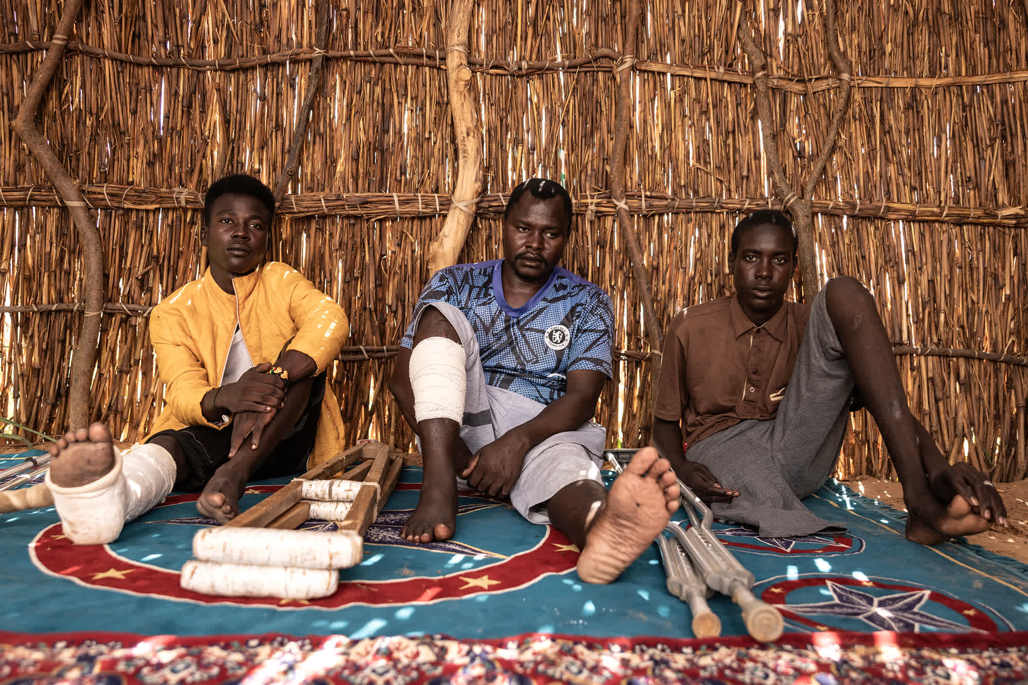 Ахмед Абдурахман Ахмед Закариа, Халил Адам Халил, Абдулла Эль Хадж Абдулла нар зүүн Чад дахь дүрвэгсдийн хуаранд хамтдаа сууж байна.