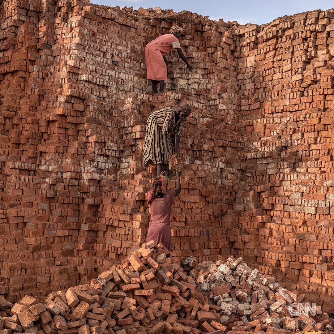 Адре дахь дүрвэгсдийн хуаранд эмэгтэйчүүд тоосго зөөж мөнгө олдог байна.
