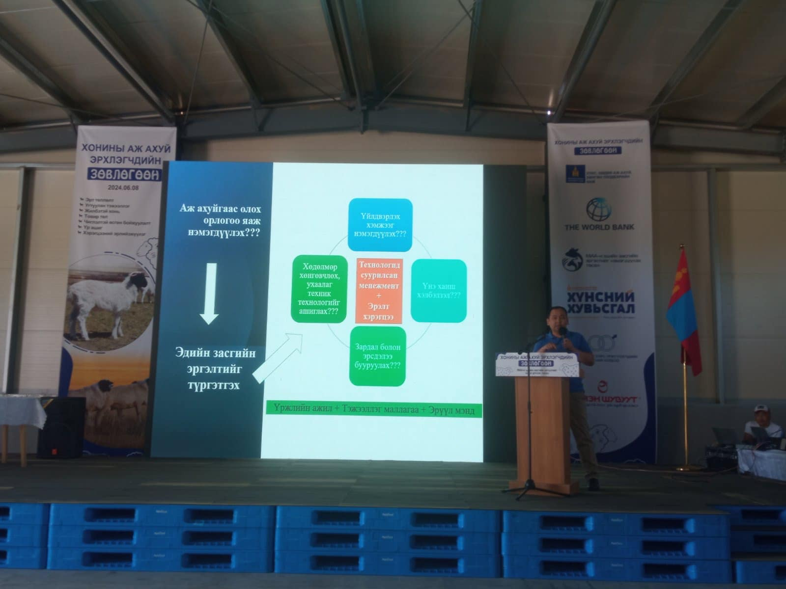 Зөвлөгөөнөөр хонины аж ахуйг хэрхэн эрчимжүүлэх, тэжээллэг арчилгаа, маллагааны талаарх олон төсөл арга хэмжээний туршилт үр дүнг танилцуулан тулгамдаж буй асуудлын талаар харилцан санал солилцов.