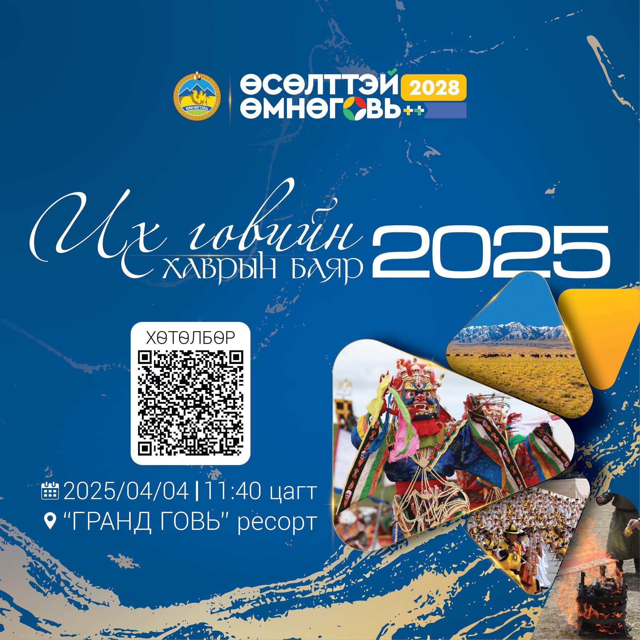 Аймгийн Засаг даргын 2024-2028 оны үйл ажиллагааны "Өсөлттэй Өмнөговь" хөтөлбөрийн хүрээнд Монгол Улсаас ЮНЕСКО-ийн Яаралтай хамгаалах шаардлагатай соёлын биет бус өвийн жагсаалтад 2017 онд бүртгүүлсэн Уул овоо тахих монгол зан үйлийг сурталчлан таниулах зорилгоор “Их говийн хаврын баяр-2025” нутгийн уул ус аргадан цэнгүүлэх Монгол зан үйлийн арга хэмжээг 2025 оны 04 дүгээр сарын 04-ний өдөр буюу ханш нээх өдрөөр Гранд говь ресортод зохион байгуулна.