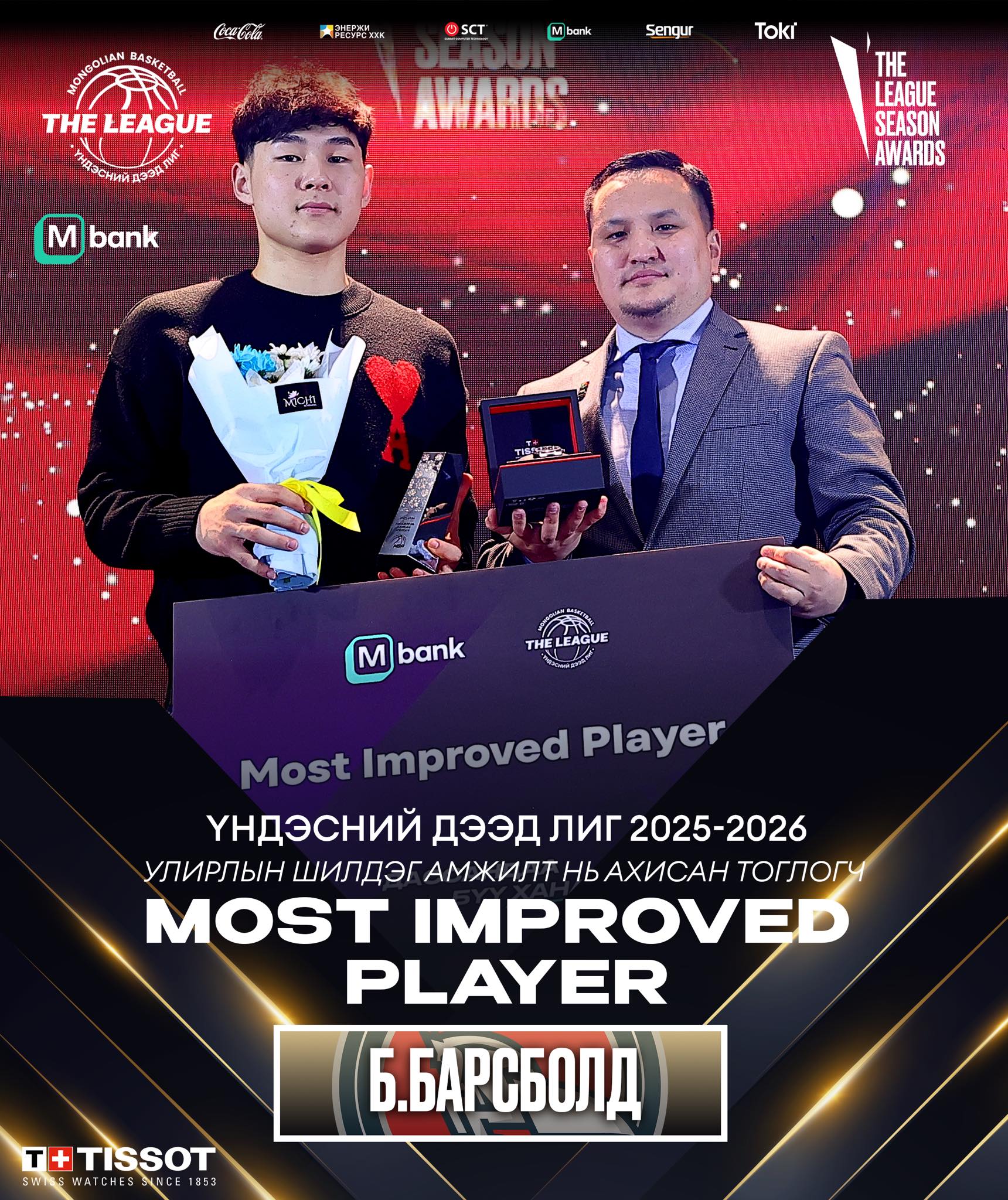 МСБХ-ны Үндэсний Дээд Лигийн “Улирлын Шилдэг Амжилт нь Ахисан Тоглогч”-ийн шагналын эзнээр Хасын Хүлэгүүд багийн тоглогч Б.Барсболд тодорлоо. Тэрээр Үндэсний Дээд Лигт буюу 2024-2025 оны улиралд 7.9 оноо 3.6 самбар 3.1 оновчтой дамжуулалт 2.1 бөмбөг таслалт 37% довтолгооны гүйцэтгэл дунджилсан.