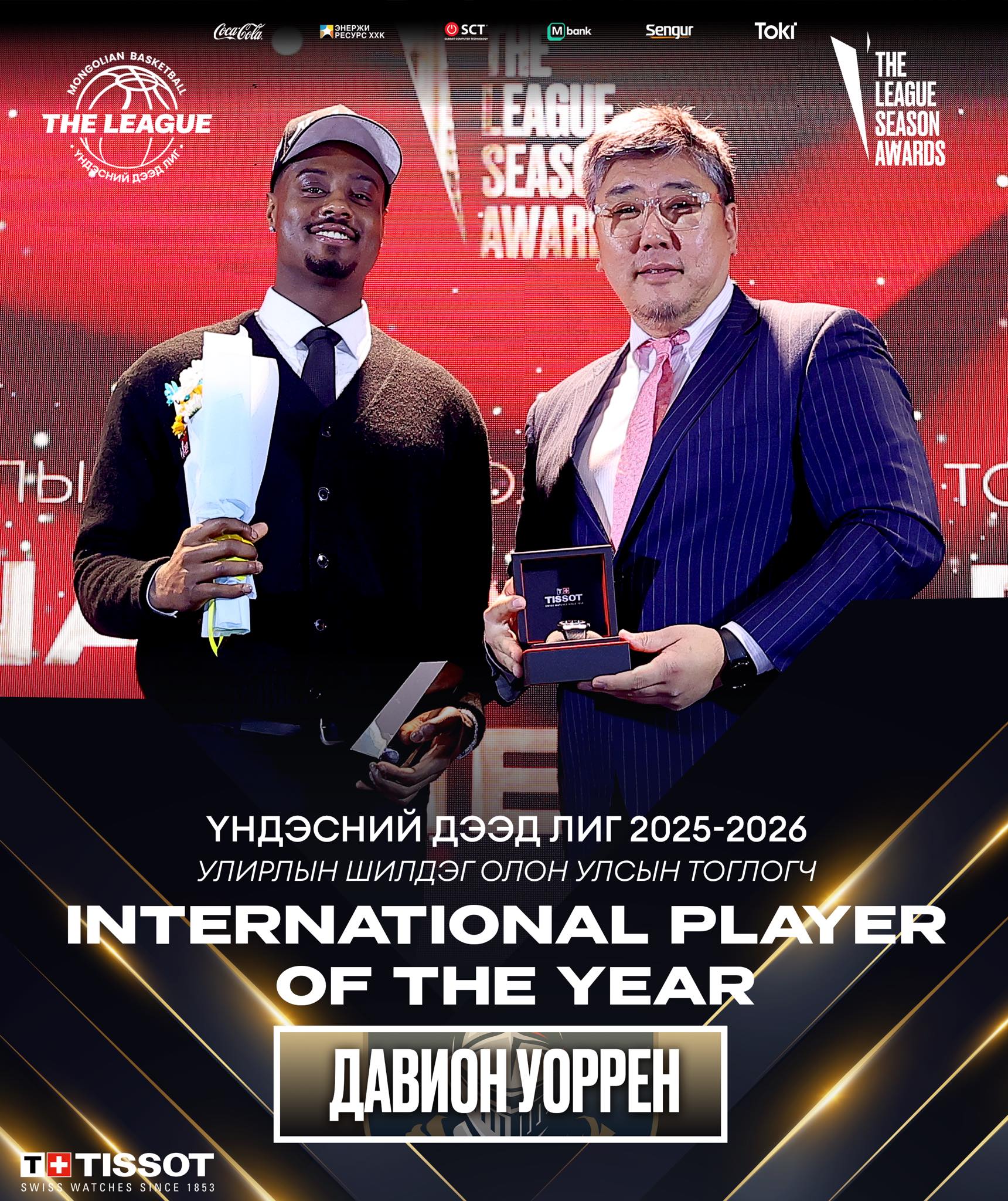 Давион Уоррен Үндэсний Дээд Лигийн 2025-2026 оны улирлын 26 тоглолтод оролцохдоо 26.7 оноо 6.1 самбар 5.8 оновчтой дамжуулалт 3.0 бөмбөг таслалт гэсэн статистикыг үзүүлжээ.