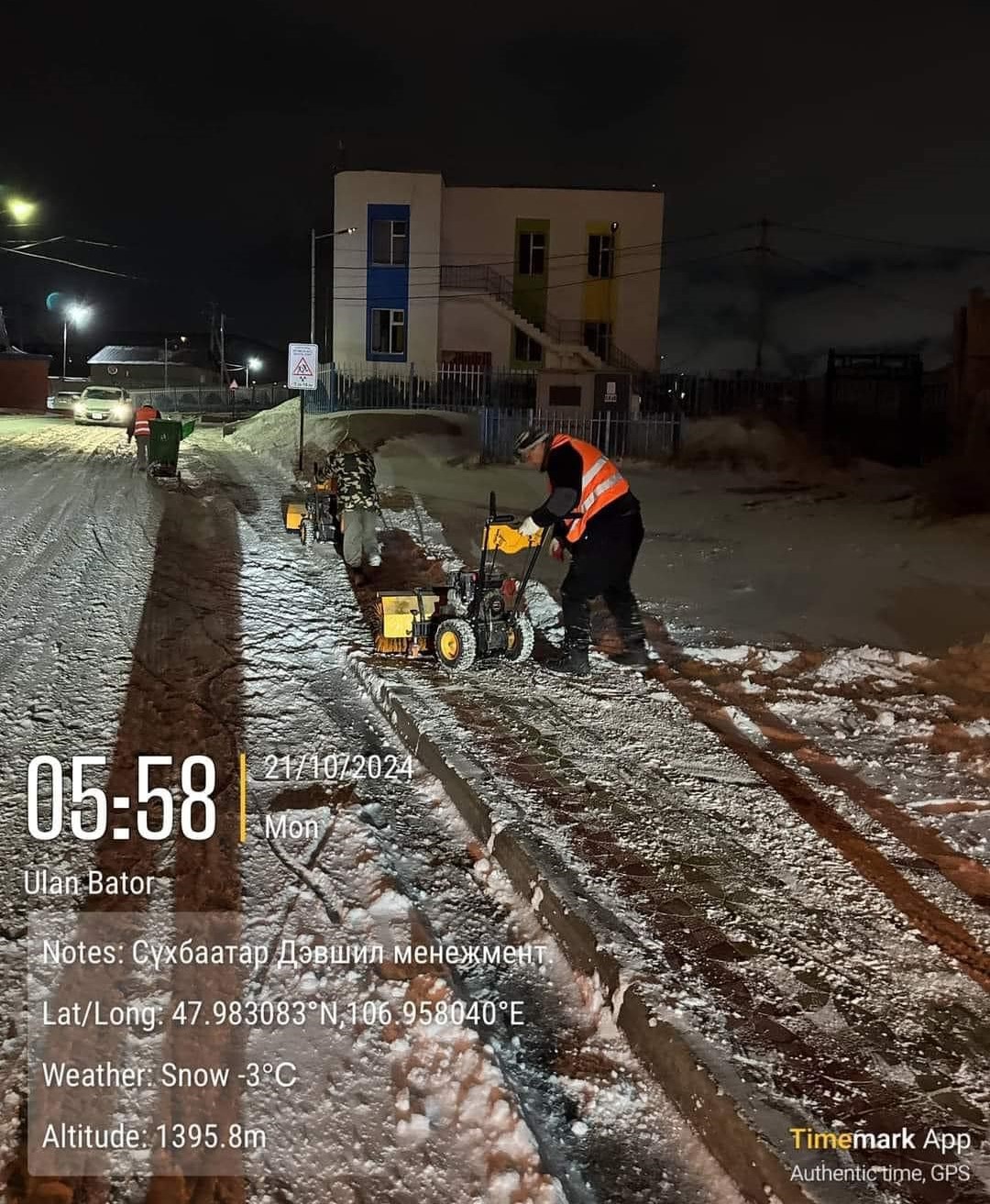 Улаанбаатар хотын гол болон туслах зам цэвэрлэгээнд өнгөрсөн шөнө 500 гаруй албан хаагч, 100 орчим техник хэрэгсэлтэй ажиллаж, 425 тонн давс, 83 тонн бодис цацаж, цэвэрлээд байна. Энэ үеэр Улаанбаатар хотын Ерөнхий менежер Ц.Төрхүү болон холбогдох албаны хүмүүс тухайн байршлуудад ажилласан юм. Ийнхүү замд дагтаршсан цасыг түрэх, давс бодис цацах ажлууд үргэлжилж байна.