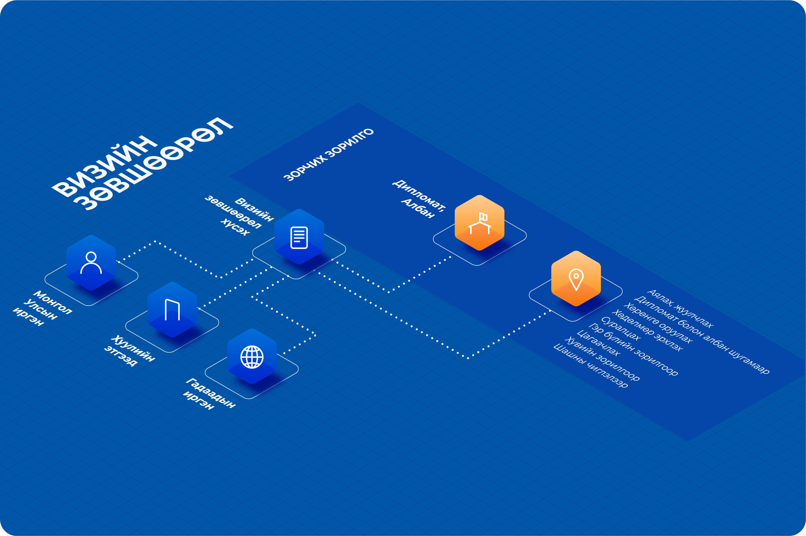 Монгол Улсад зорчиж хөрөнгө оруулалт хийх, хөдөлмөр эрхлэх, суралцах гэж буй оюутнууд, гэр бүлийн шугамаар ирж байгаа зэрэг 54 ангиллын визийг цахимаар мэдүүлээд хариугаа цахимаар авдаг үйл явц руу шилжлээ.