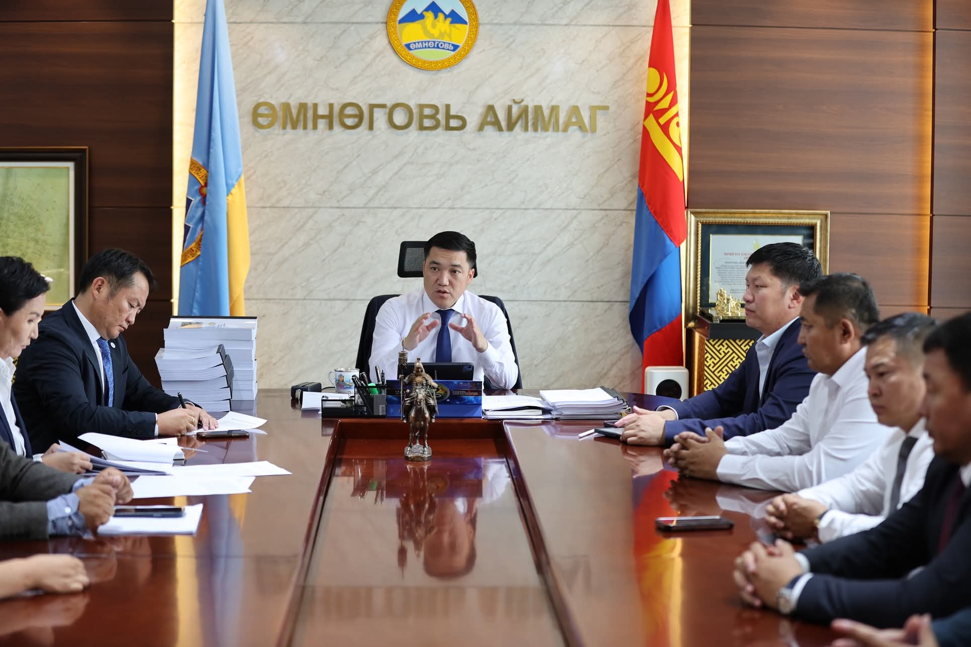 Мөн уулзалтын үеэр Өмнөговь аймаг Гамшгаас хамгаалах судалгаа шинжилгээний үндэсний төвтэй хамтран, орон нутгийн төсвийн хөрөнгөөр боловсруулсан 15 сумын гамшгийн эрсдэлийн үнэлгээг Засаг дарга нарт гардуулан өглөө.