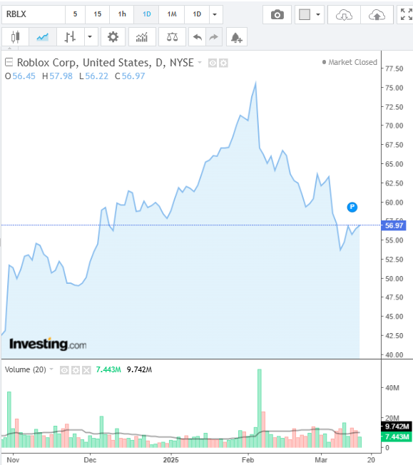 "ROBLOX"-ийн хувьцааны ханшийн хөдөлгөөн