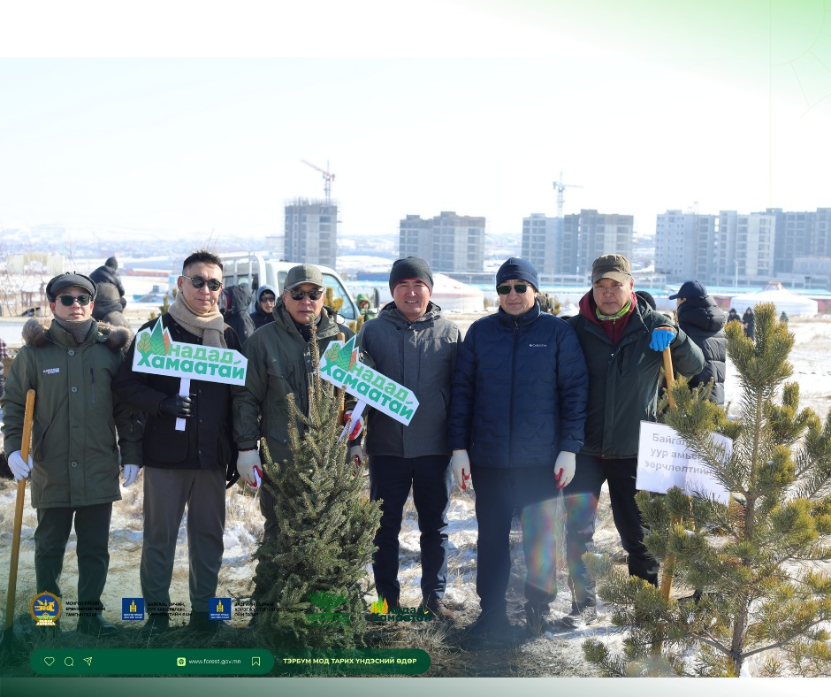 Шинэ Налайх цэцэрлэгт хүрээлэнд Байгаль орчин, уур амьсгалын өөрчлөлтийн яам, Цаг уур орчны шинжилгээний газар, Ойн газар, Усны газар, Цэнгэг усны нөөц, байгаль хамгаалах төв, Туул голын сав газрын захиргаа, Богдхан уулын ДЦГХЗ, Хан Хэнтийн УТХГХЗ, Налайх дүүргийн 119-р сургууль нийт 9 байгууллагын хамт олон нийт 302 ширхэг мод тарилаа.