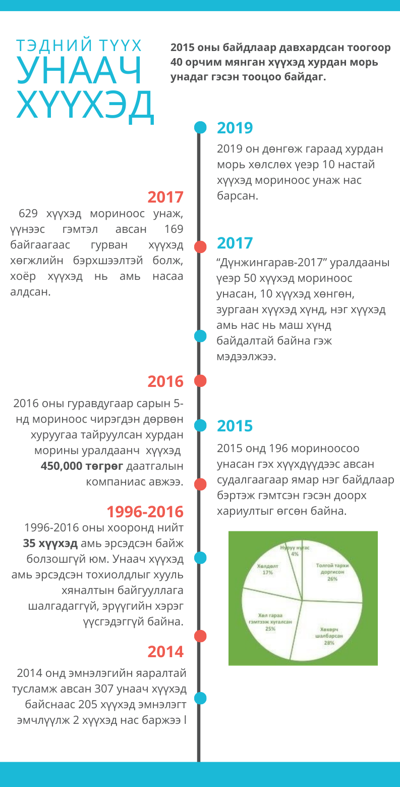 Хүний Эрхийн Үндэсний Комиссын "Хурдан морины уралдааны явцад мориноосоо унаж амь эрсэдсэн хүүхдийн судалгаа” 2006 он гэх мэт олон судалгаа байдаг аж.