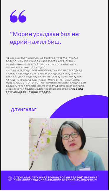 “Бага насны хүүхэд хурдан морь унаж уралдахыг хүүхдийн хөдөлмөрийн тэвчишгүй хэлбэр гэж үзэх нь түгээмэл ойлголт болж байна.”