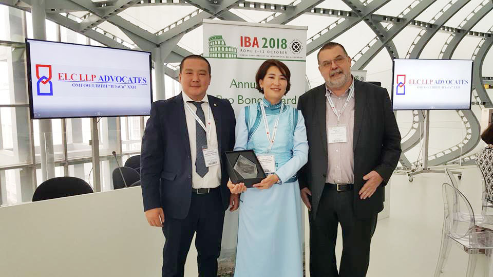 Энэхүү хэрэг дээр ҮНЭ ТӨЛБӨРГҮЙ ажилласан ELC фирмийн өмгөөлөгч Х.Баасанжаргал нь IBA Pro Bono Award буюу Про Боно үйлчилгээ үзүүлдэг шилдэг хуульчаар шалгарсан юм.