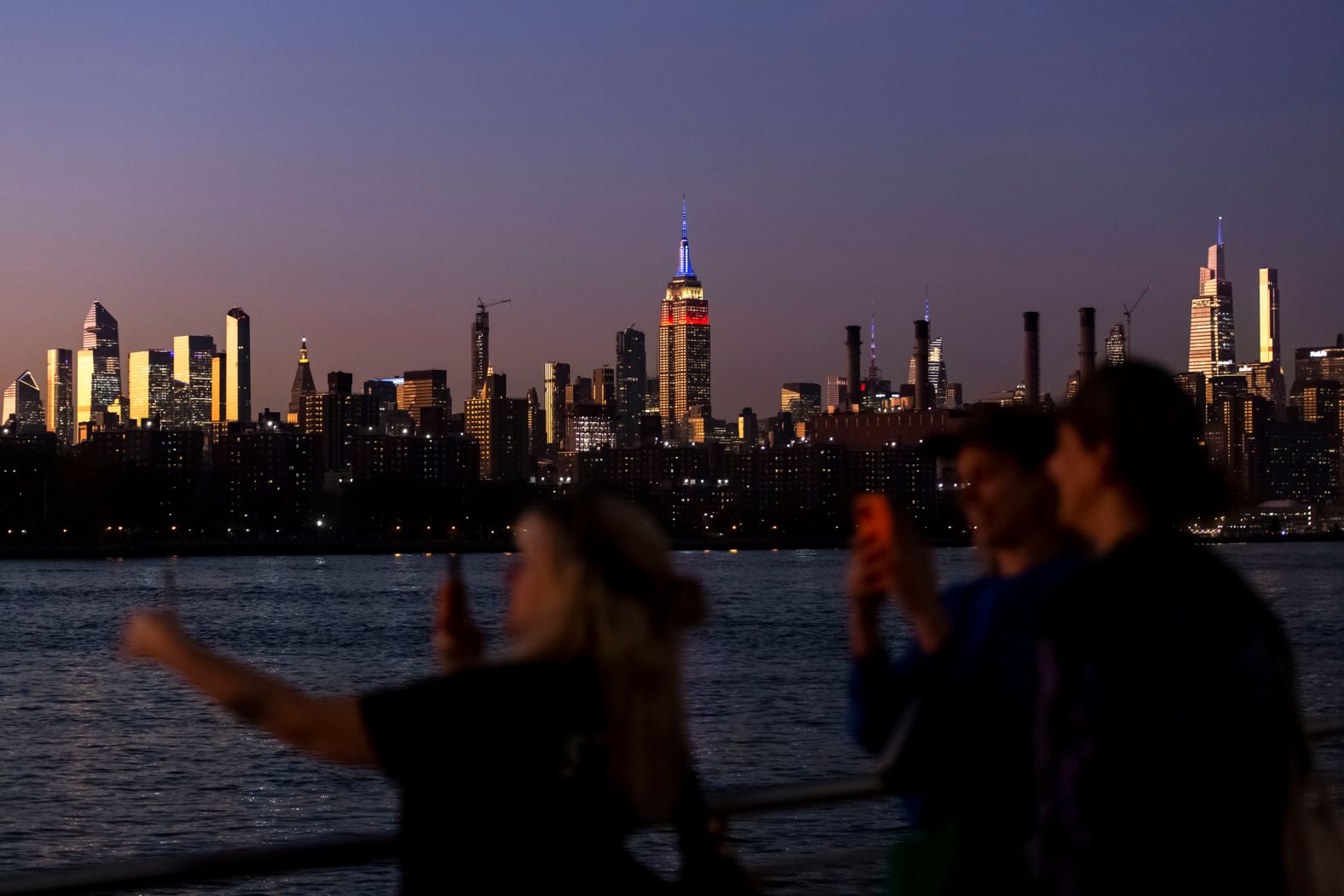 Нью-Йорк. "Empire city" улаан, цэнхэр, цагаан өнгөөр гэрэлтэв.