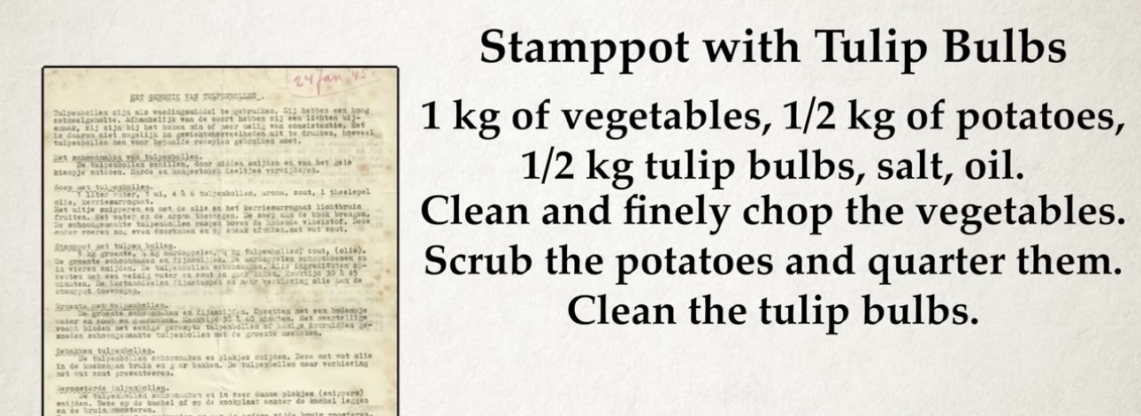 Дайны төгсгөл жилүүдэд өлсгөлөн улам газар авч 1944–1945 оны өвөл Недерланд улсыг “Hongerwinter” буюу “Өлсгөлөн өвөл” нөмөрчээ. Өлсгөлөнд нэрвэгдсэн олонд төмс, гурил зэрэг үндсэн хүнс мартагдсан, ихэнх нь өлбөрч үхсэн, аргаа барсан хэсэг нь амь зогоохын тулд Алтанзулын булцууг буцалгаж, шөл хийж, заримдаа хуурч иддэн амьд үлдсэн гэдэг. Заримдаа булцууг идээд хордлого авч, нас барсан тохиолдлууд ч бүртгэгдсэн байдаг аж.