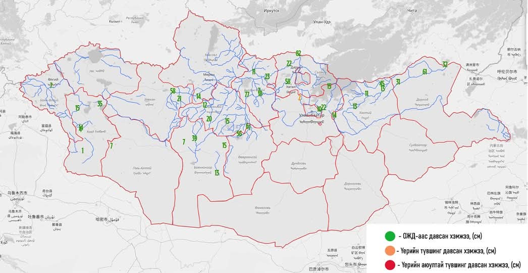 👉7 дугаар сарын 28-ны өдрийн байдлаар Сэлэнгэ/Хялганат/, Онон/Дадал/, голуудын усны түвшин өмнөх өдрөөс 10 см тус тус нэмэгдсэн байна. Мөн Орхон гол Өлзийт сум орчимд үерийн түвшинд хүрч үерлэж байна.