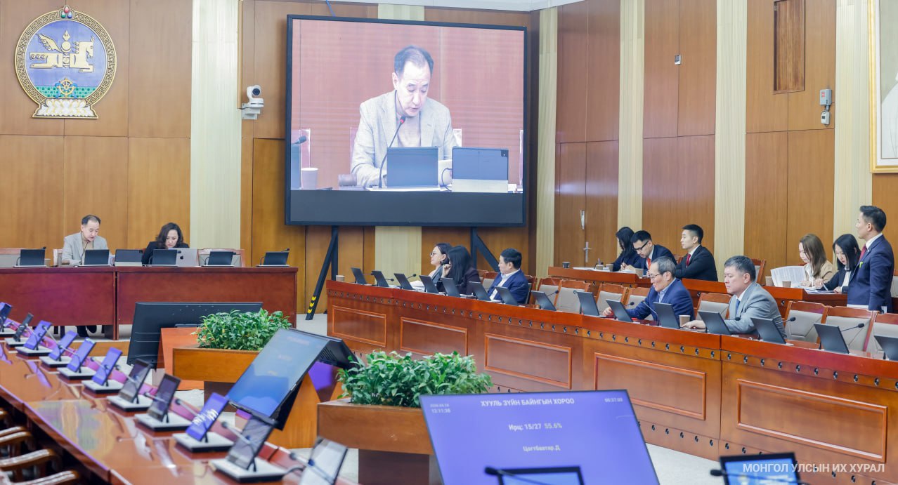 Улсын Их Хурлын Хууль зүйн байнгын хороо өнөөдөр /2026.04.14/ Төрийн ордны “Их Эзэн Чингис хаан” танхимд хуралдаж, хоёр асуудал хэлэлцэн шийдвэрлэв. Байнгын хорооны 27 гишүүнээс 14 нь буюу Н.Алтанхуяг, Х.Баасанжаргал, О.Алтангэрэл, Дам.Цогтбаатар, Д.Ганбат, М.Нарантуяа-Нара, Г.Дамдинням, С.Одонтуяа, Д.Пүрэвдаваа, У.Отгонбаяр, П.Сайнзориг, Ц.Сандаг-Очир, Х.Тэмүүжин, Дав.Цогтбаатар нарын гишүүд ирснээр хуралдаан 11 цаг 35 минутад 51.9 хувийн ирцтэй эхэллээ.