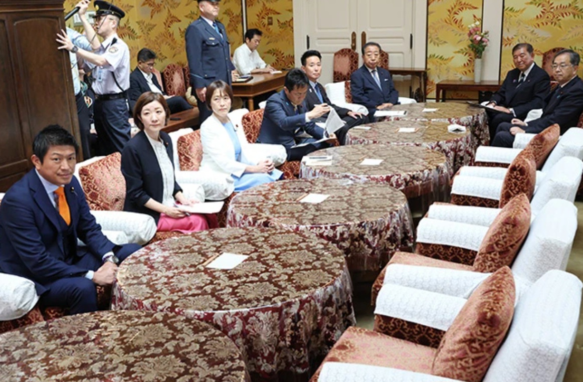 Ерөнхий сайд Шигэру Ишиба, 7-р сарын 25-нд Парламентын байранд болсон уулзалтаар зургаан сөрөг хүчний намын болон эвслийн хамтрагч Комэйто намын удирдагчтай уулзав.