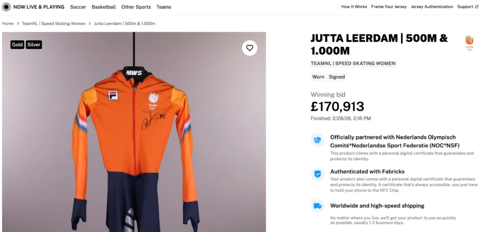 "Милан Кортина"-гийн өвлийн олимпын наадмын эмэгтэйчүүдийн тэшүүрийн 1000 метрийн зайд түрүүлсэн Нидерландын Ютта Лердамын өмсгөлийг дуудлага худалдаагаар заржээ.